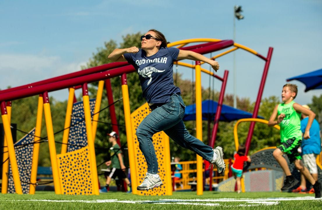 When people of different ages play together, something magic happens! Not only does everyone enjoy significant physical, social, emotional, and cognitive benefits , those benefits increase exponentially when people of different ages play together in the same space.