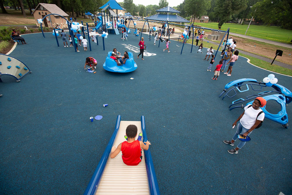 Features in the new space include a pavilion for community gatherings, a splash pad, an accessible playground, an outdoor obstacle course with a 40-yard dash, and improved walking paths. The walking trail features fitness pods and play pockets, including a blacksmith shop that honors David Carnes, one of the first African-American landowners in the area and the park’s namesake.