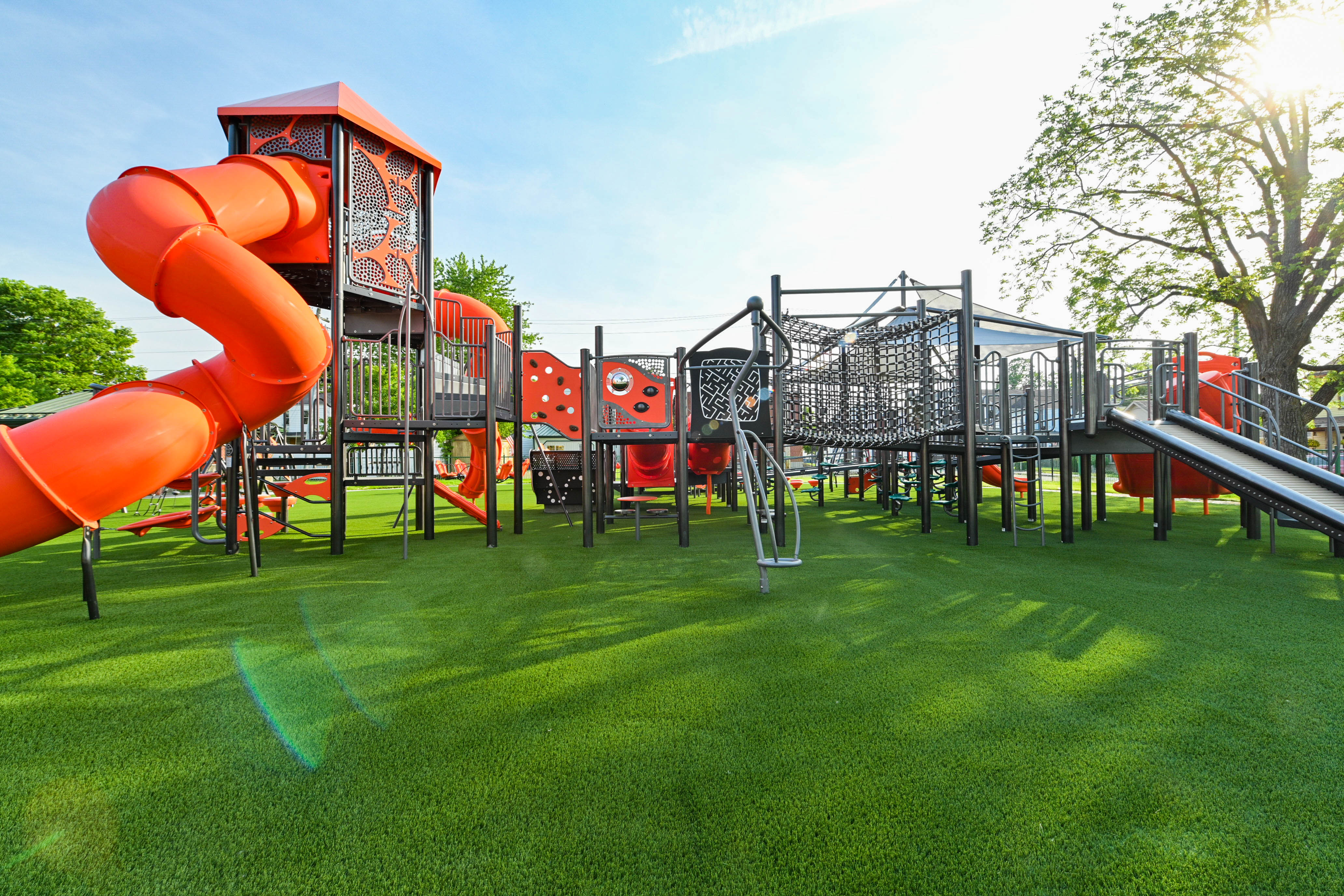 With a playground tower, net climbers, roller slide, and more, there's something for everyone at the new Arch Street Park playground