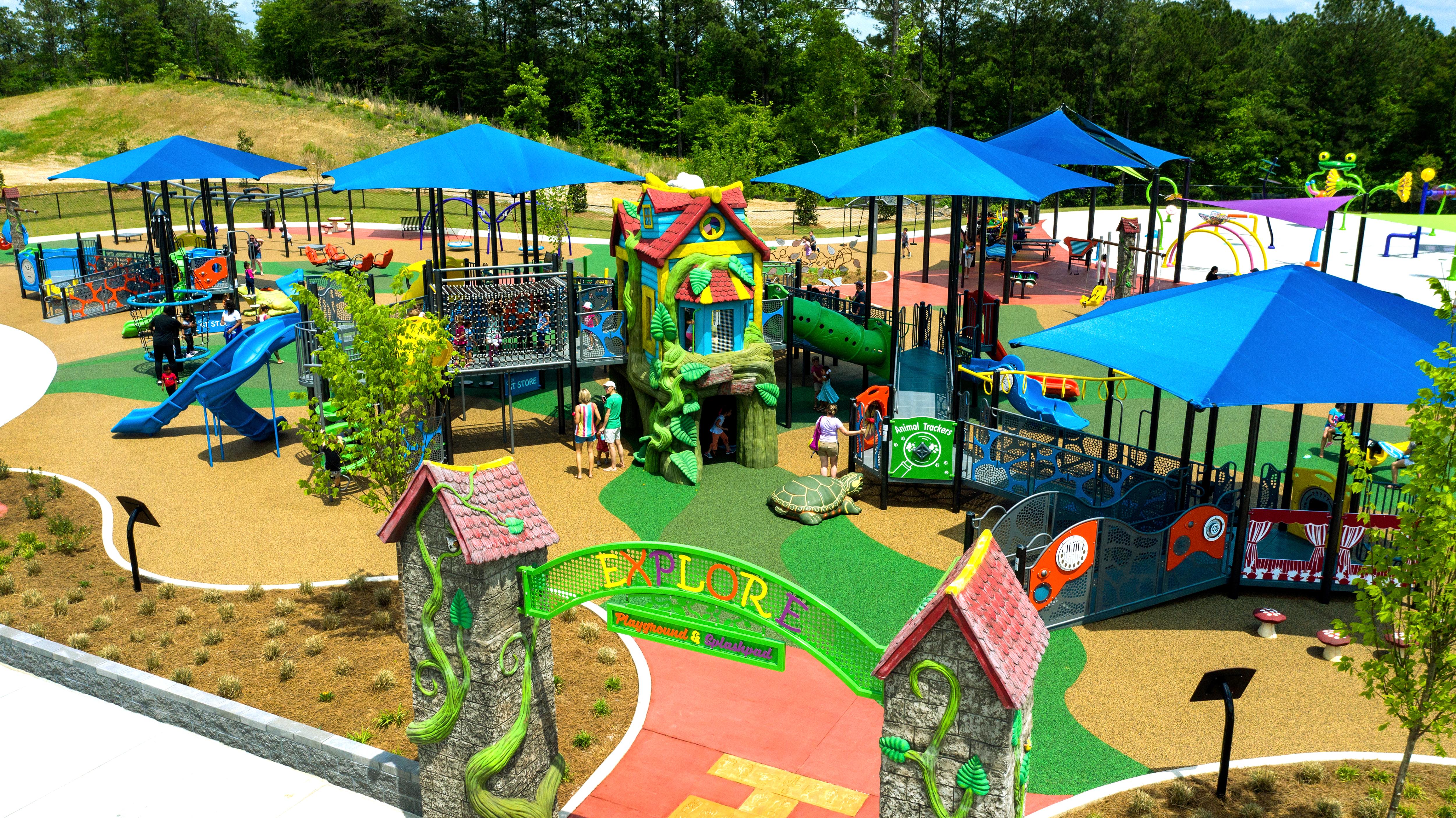 Explore Hoover: The 15,000-square-foot playground and 7,000-square-foot splash pad in Hoover makeup Alabama's largest inclusive playground. With the goal of universal access and design to provide play and recreation opportunities to people of all ages and abilities.