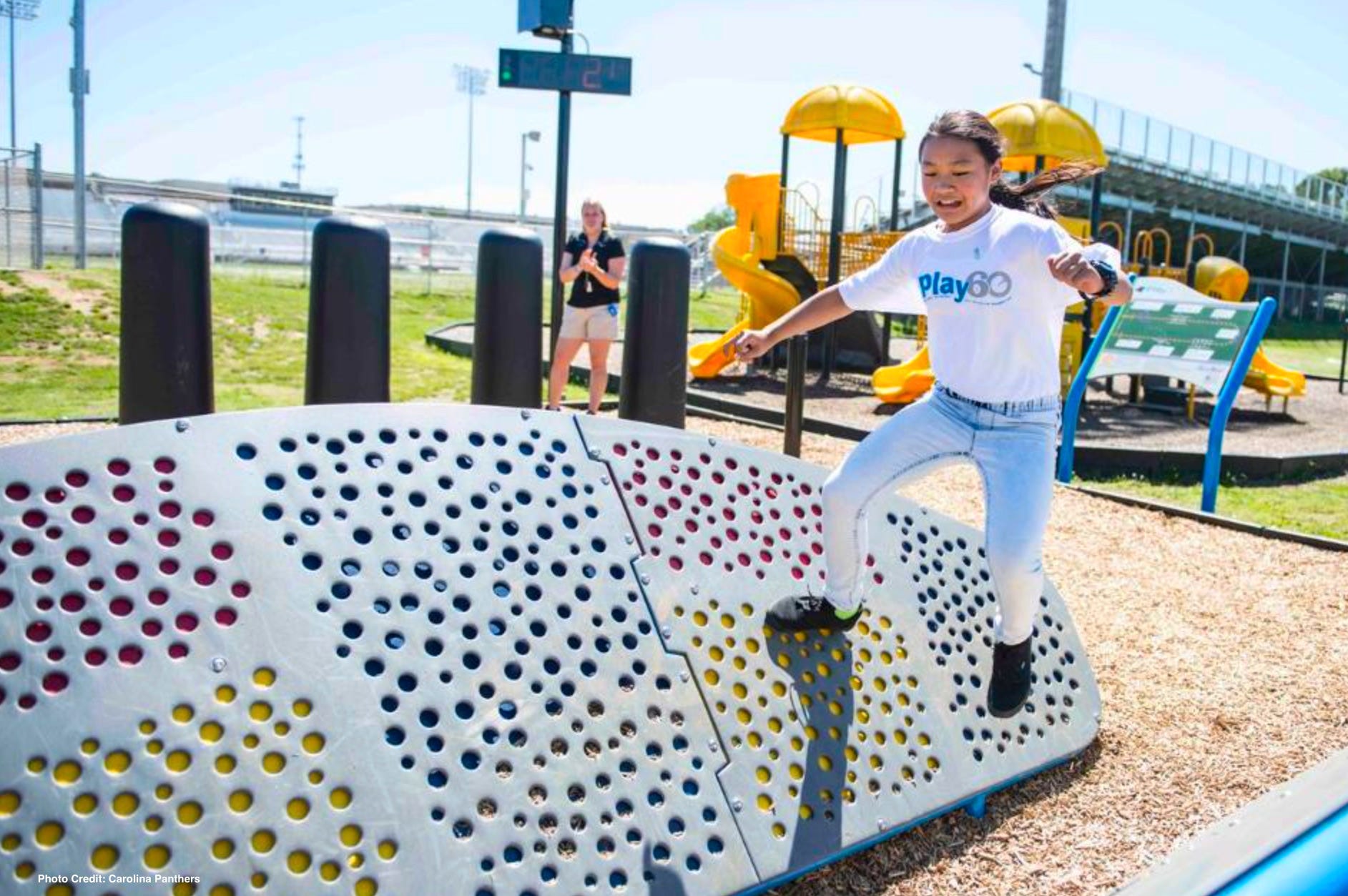 "These new playgrounds are going to serve thousands of children and provide new and exciting opportunities for active play, while encouraging kids to get 60 minutes of daily physical activity, which is one of the key elements of the NFL's Play 60 program," Panthers director of community relations Riley Fields stated on the Caroline Panthers website. "Studies show healthy and active students are more alert in the classroom, which supports the importance of providing children with resources like the Play 60 challenge courses."
