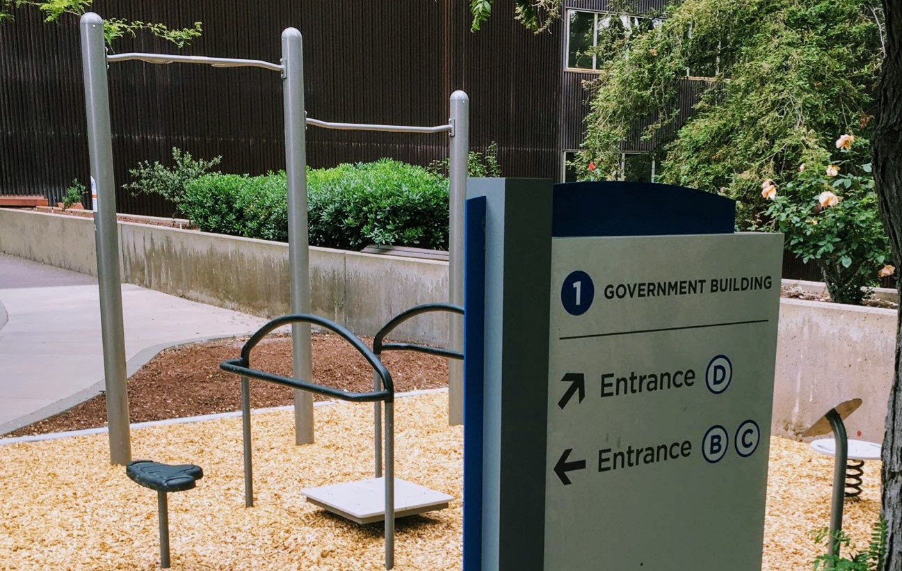 Additional GameTime fitness equipment installed outside the Santa Clara Government Center