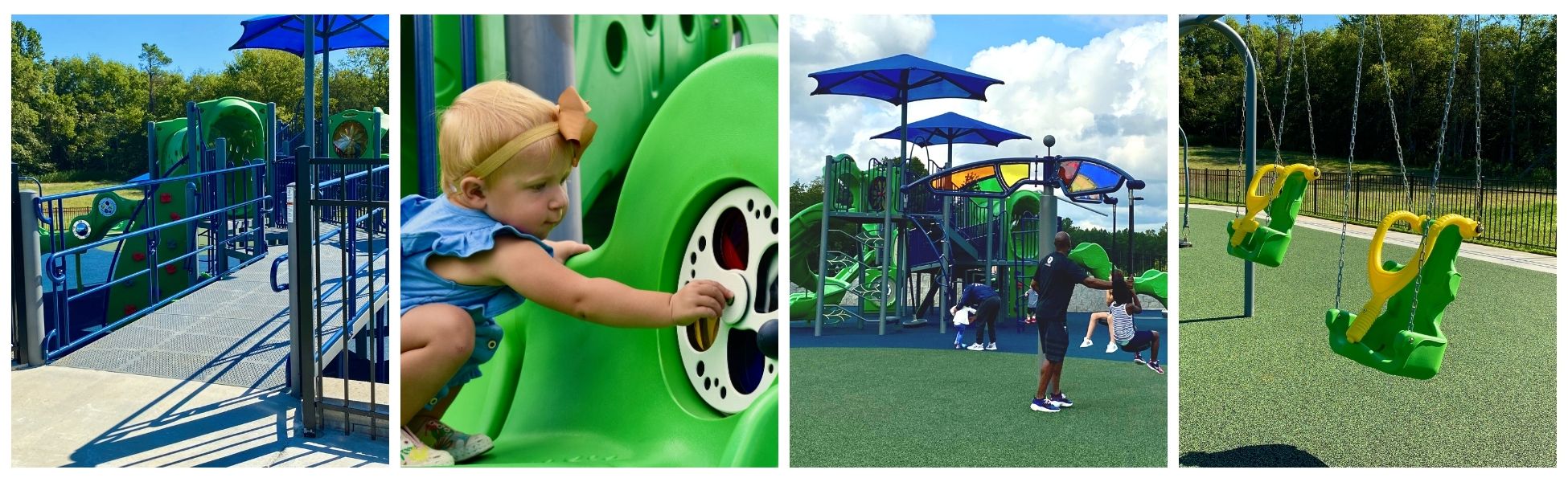 The new inclusive GameTime playground in Graham, North Carolina features double-wide ramps, sensory play activities for all ages, and adaptive equipment for people of all abilities.