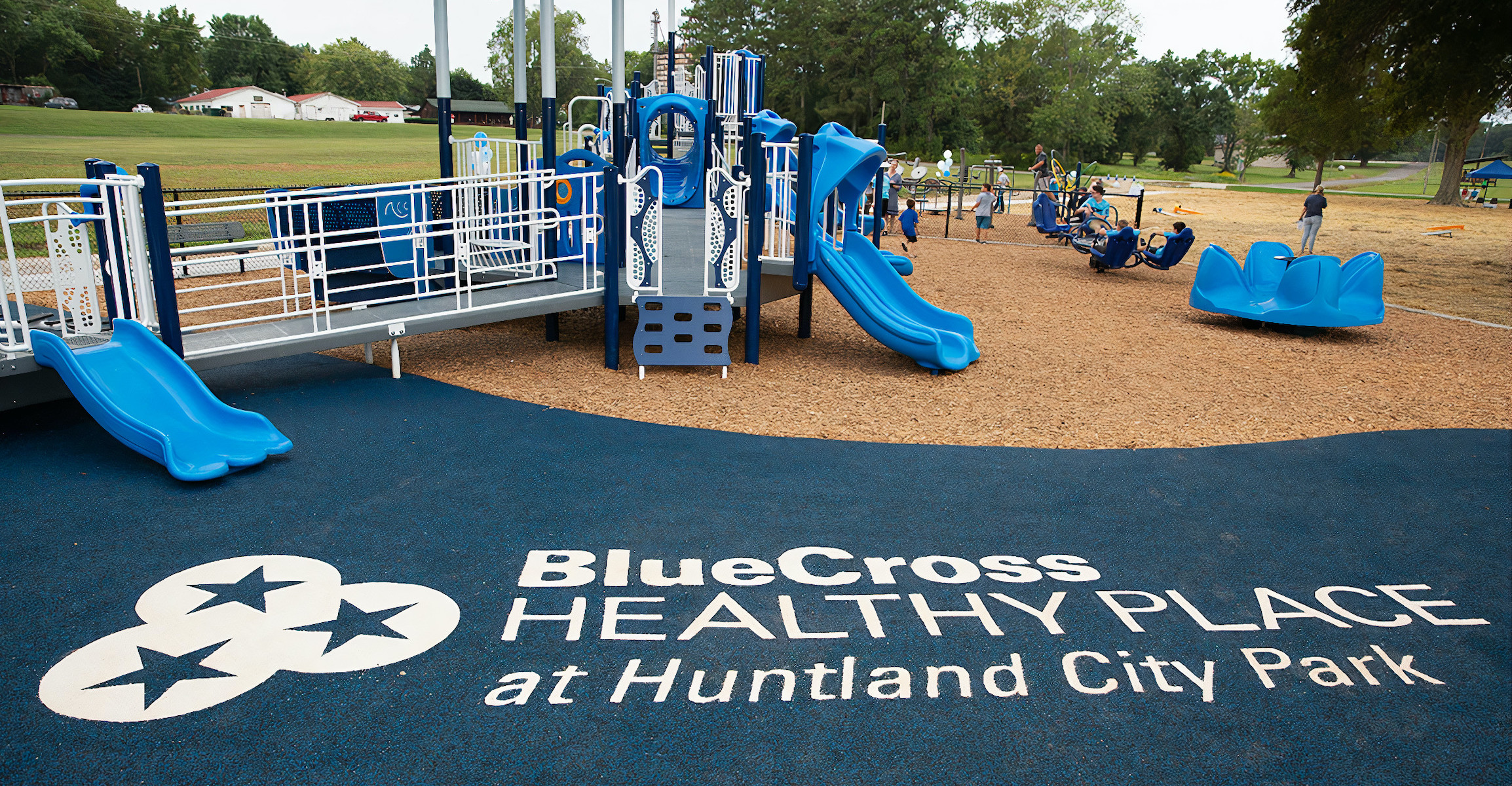 Nestled along the Tennessee-Alabama state line sits Huntland, a small, rural town with a population of just over 800. Community members wanted to install an inclusive playground for years, and after raising money locally, they applied for a grant from the BlueCross BlueShield of Tennessee Foundation. Out of more than 30 proposals considered by BlueCross BlueShield of Tennessee Health Foundation, Huntland was selected to join Chattanooga and Memphis as a BlueCross Healthy Place.