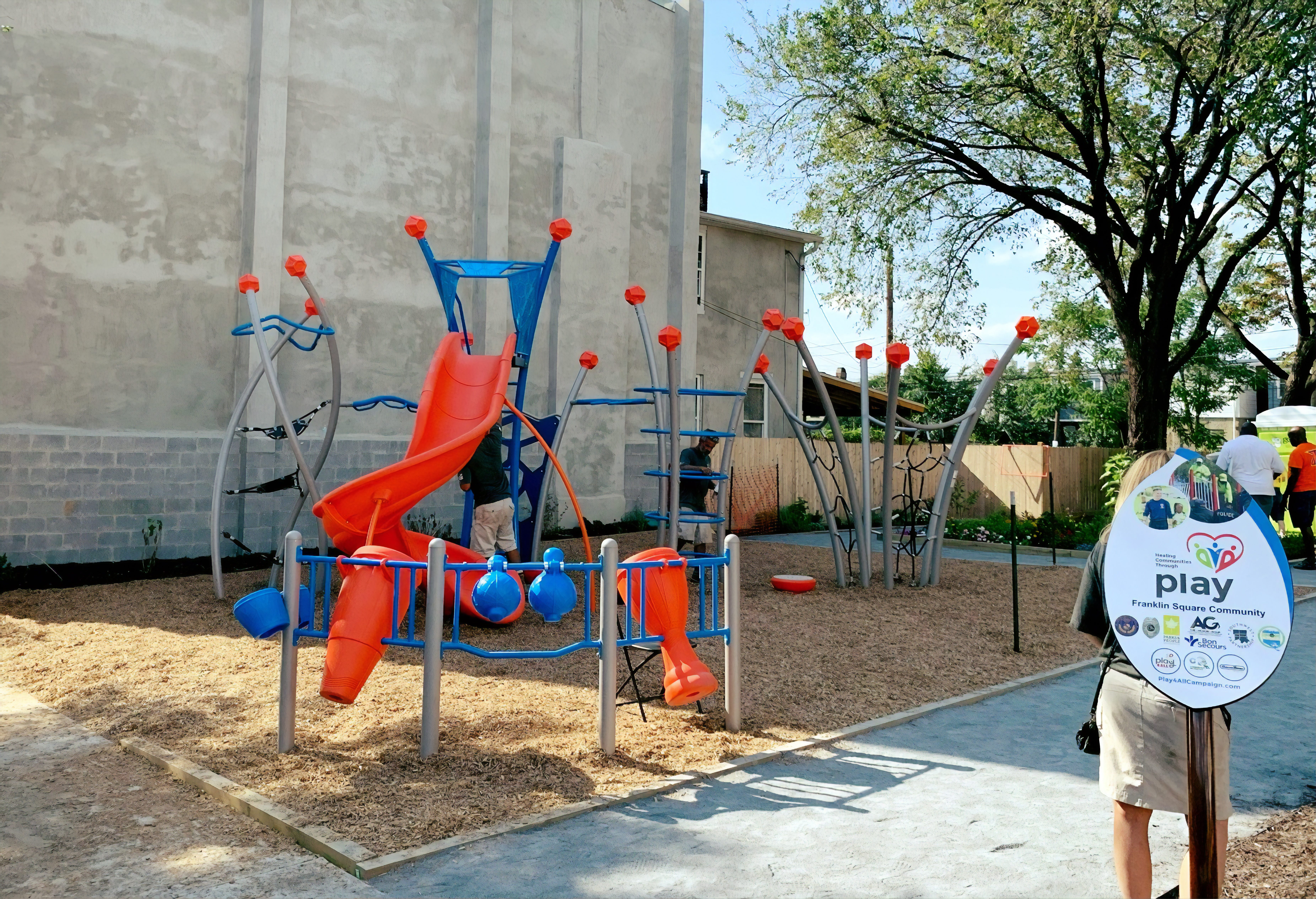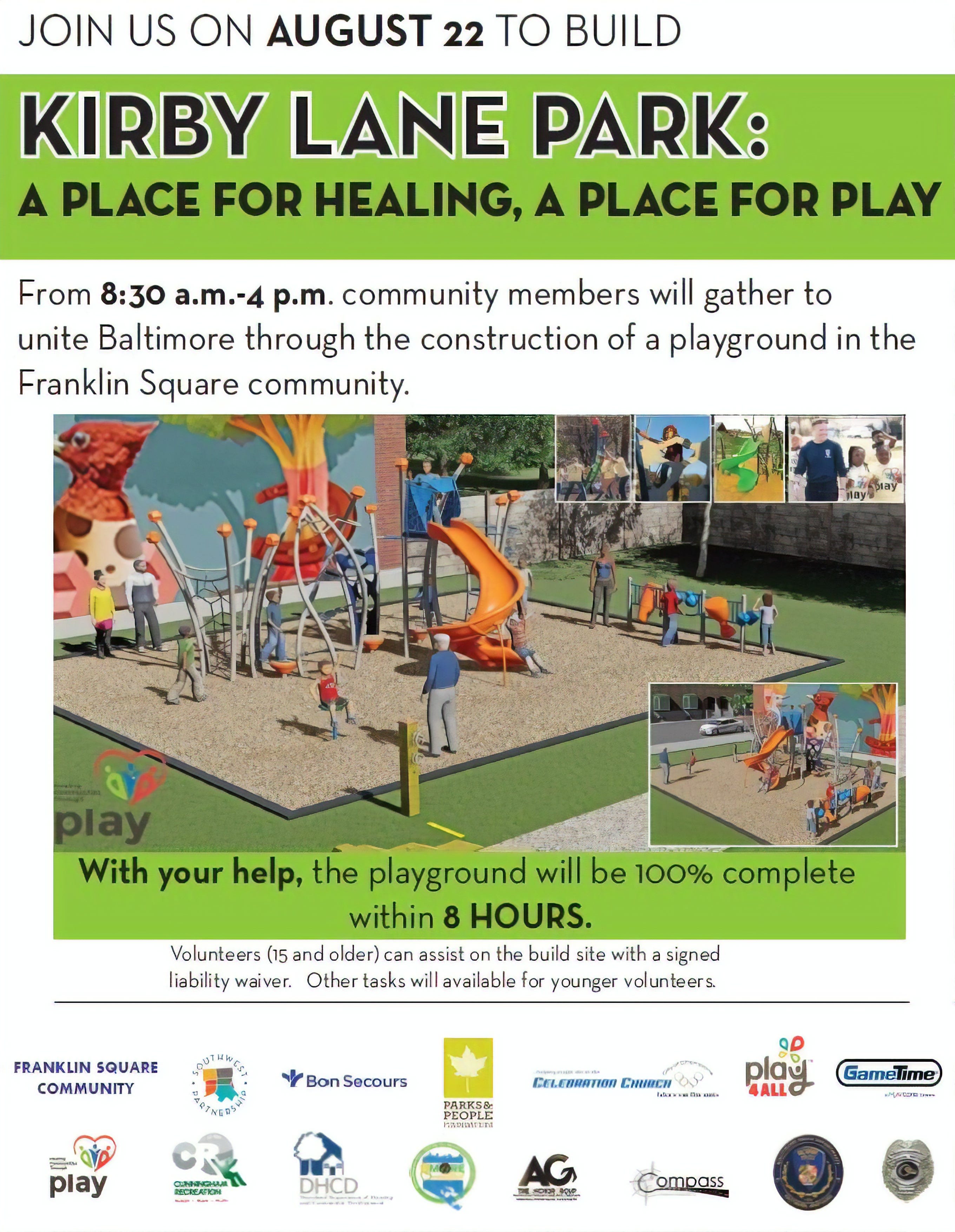 Play has a way of bringing out the best in people. It strengthens communities, and sometimes it brings about a much-needed healing. In the Franklin Square community of West Baltimore, volunteers recently completed the development of a new park. Kirby Lane park, as it is now known, is a community gathering space and a part of an ongoing project to revitalize Baltimore neighborhoods.