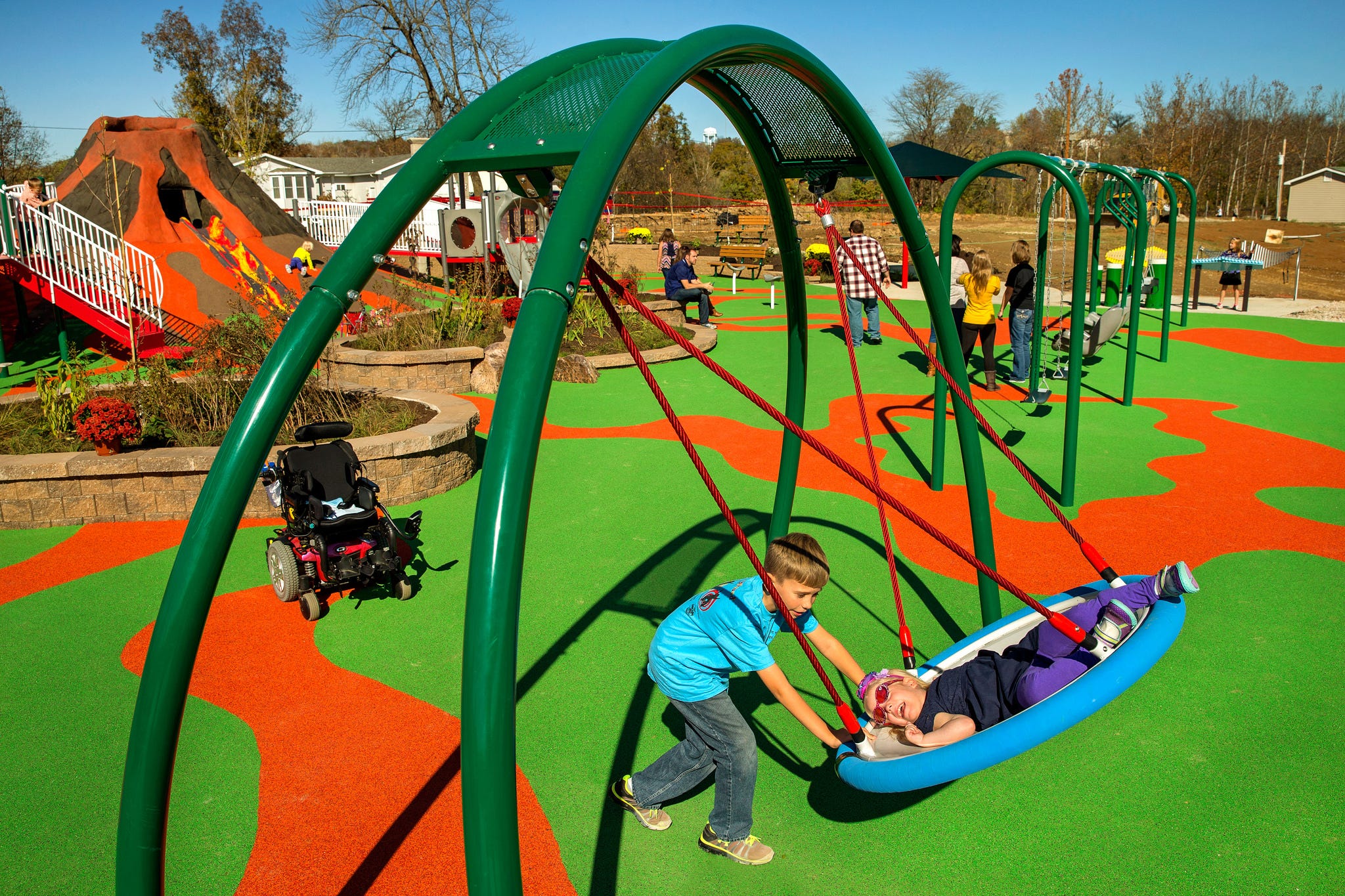 Today, the children and families of Herculaneum enjoy a beautiful custom play space that addresses the needs of all children and allows people of all abilities to play alongside one another.