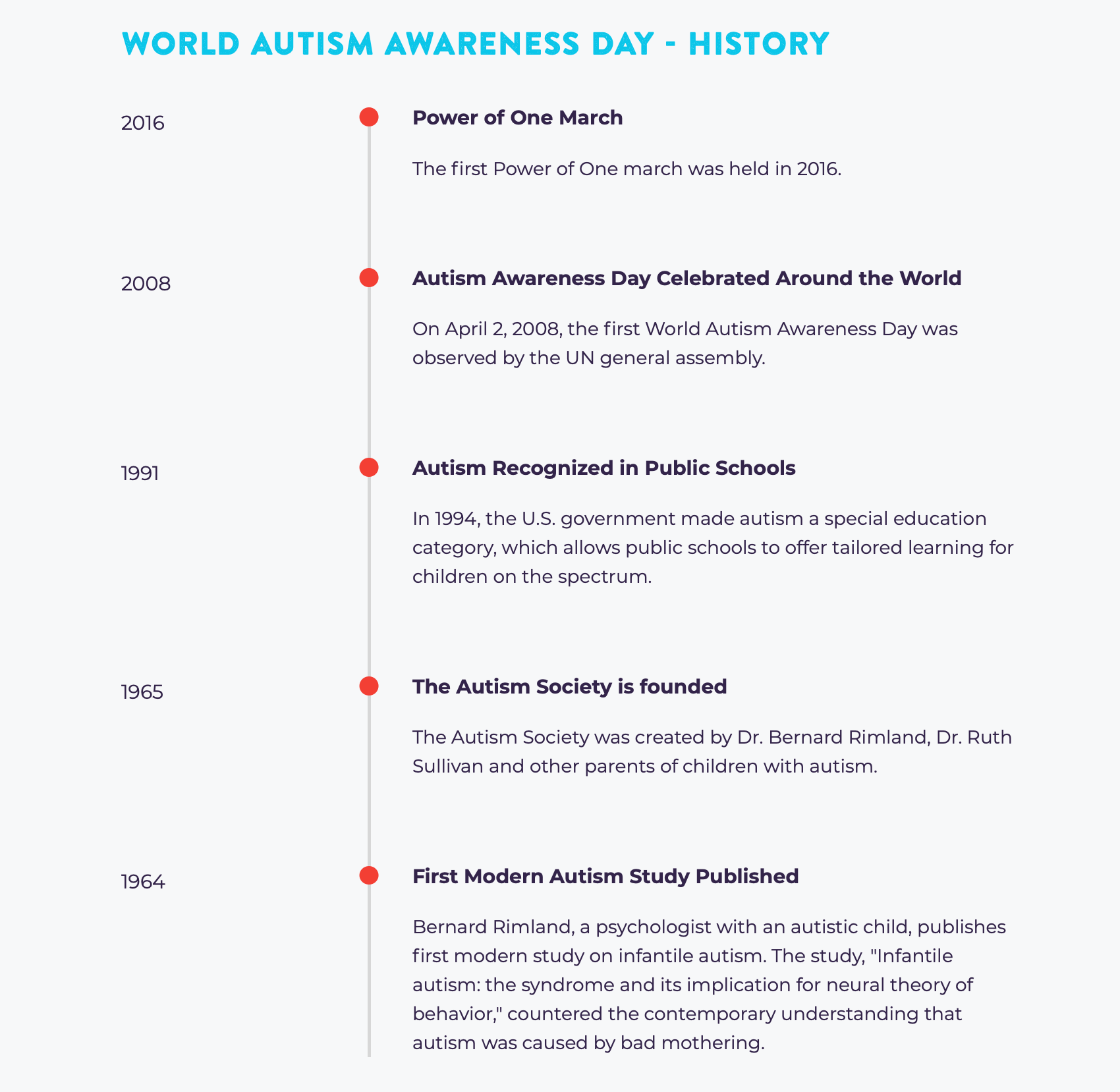 Each year The Power of One march takes place in Washington, D.C. on this day. It unites the autism community as one, showing support and love for those with autism.