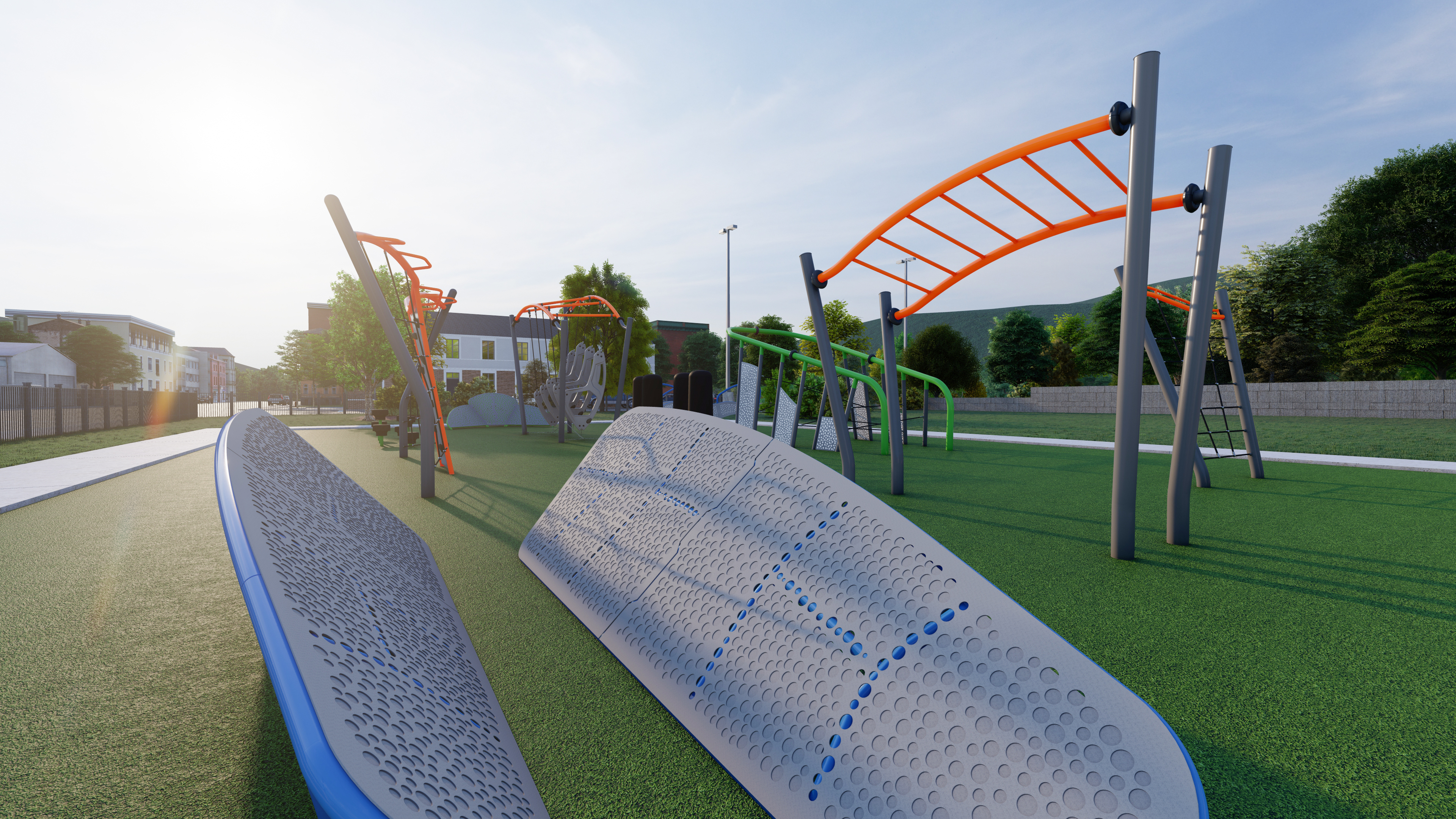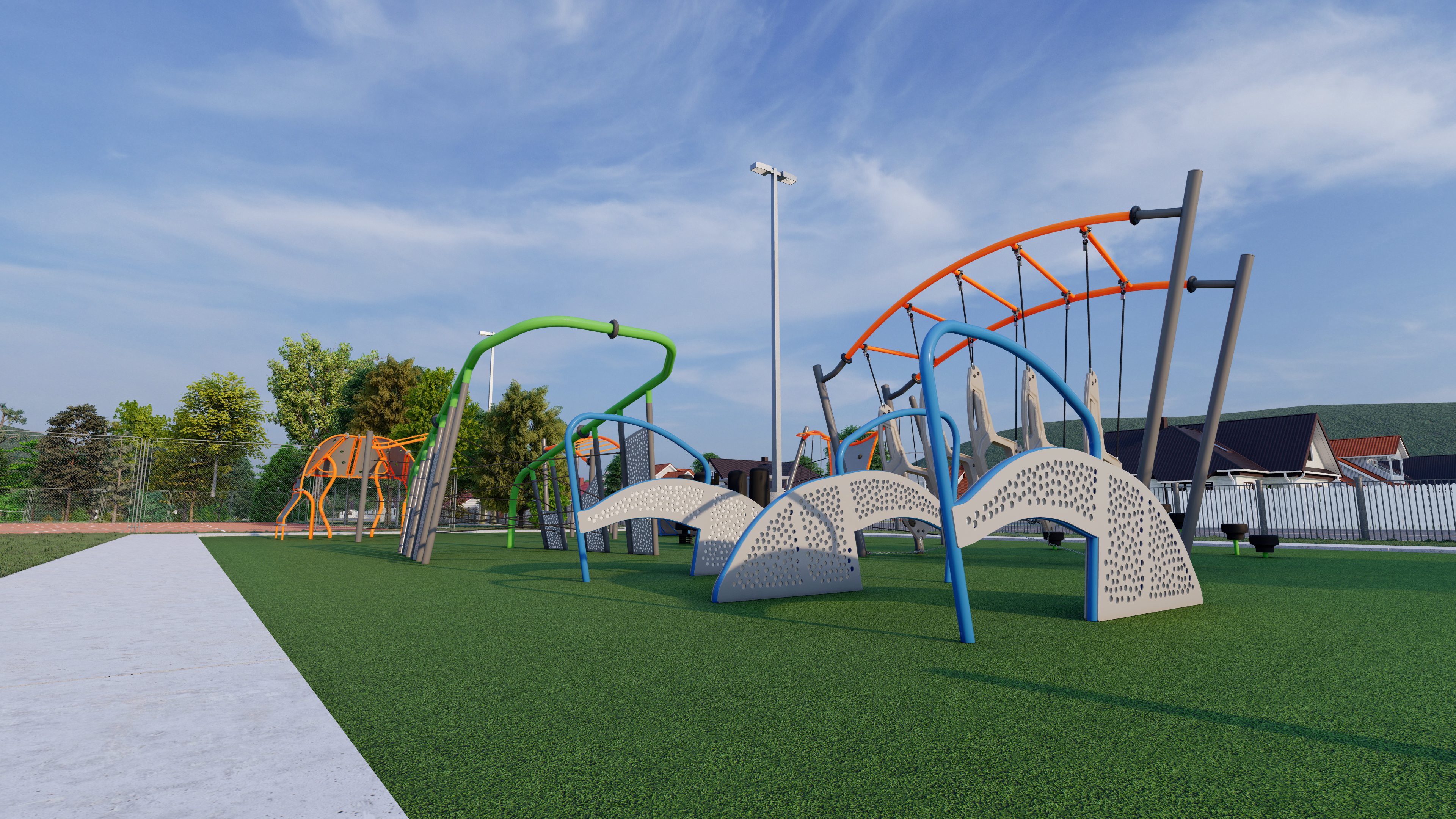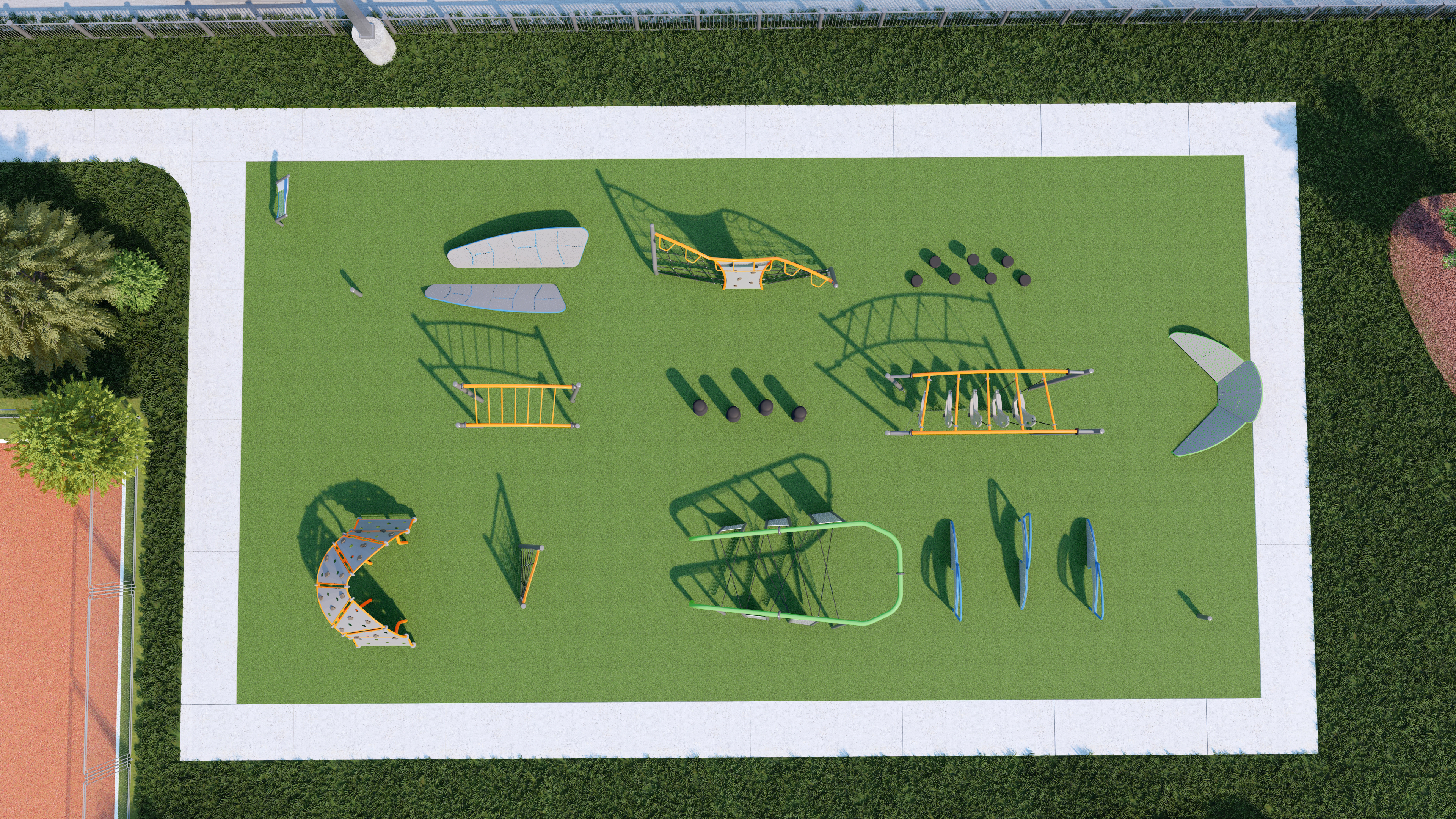 Rendering of the finish area of the FPMS Outdoor Obstacle Course