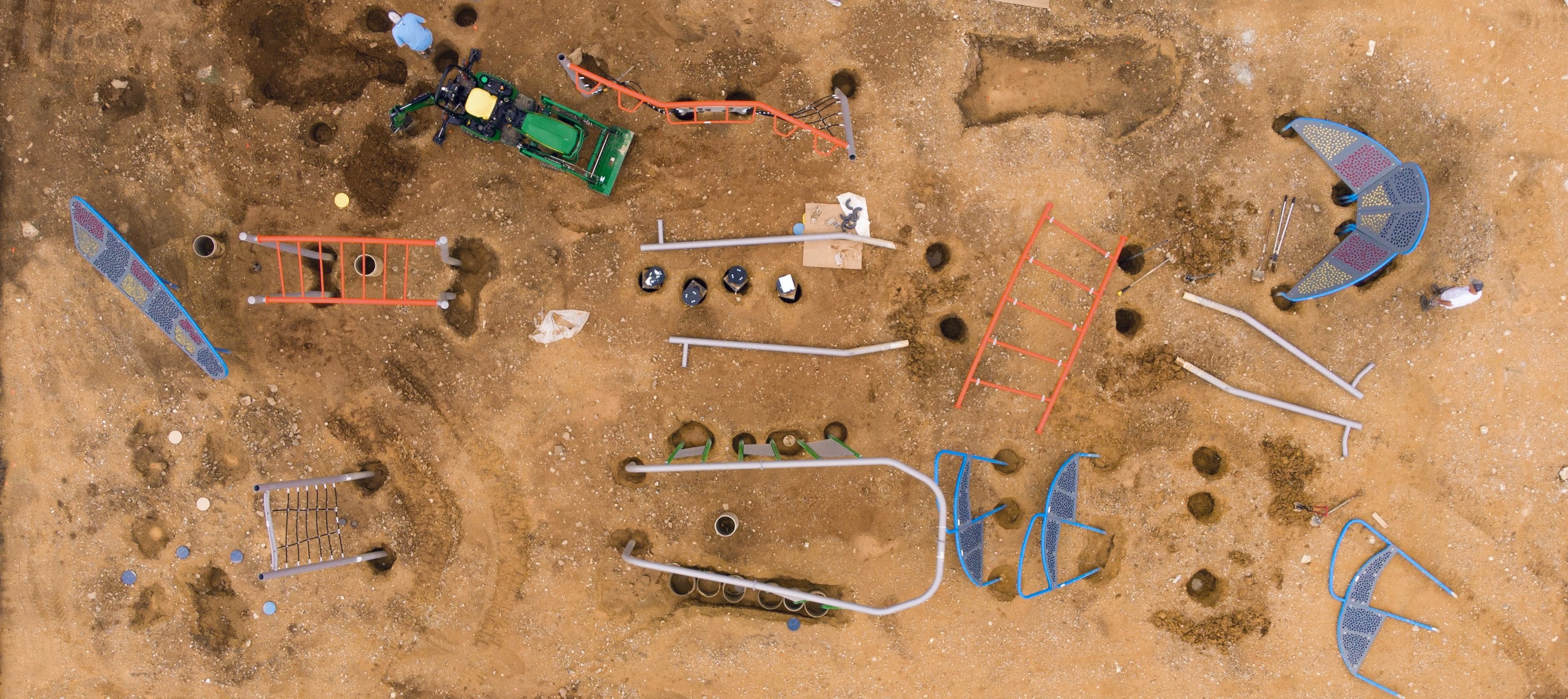Rendering of the completed outdoor obstacle course at Fort Payne Middle School and photo of site construction