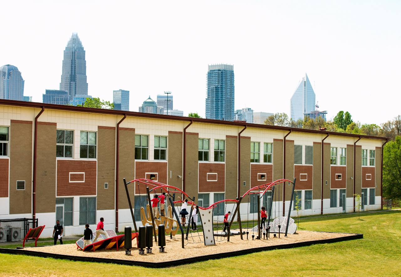 Project L.I.F.T., a public/private partnership organized as a nonprofit organization that initiates pilot projects within the Charlotte/Mecklenburg School System, sought a new way to engage older students in physical activity. While Byers has two playgrounds on the campus, traditional playground equipment is designed to meet a standard that applies to children between the ages of 2 and 12. The sixth through eighth grade students at Byers had simply outgrown the playground they had grown up with. It was time to create something more challenging for them, something that would encourage them to be active before, during and after school.
