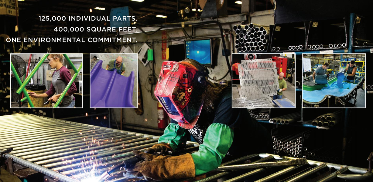 Decreasing our waste is one of the most effective ways we can reduce our environmental footprint. That’s why we make every effort to recycle the waste from our manufacturing process. The vast majority of waste at our facilities is recycled, including 100% of scrap metal and molded plastics. Every year, GameTime recycles: