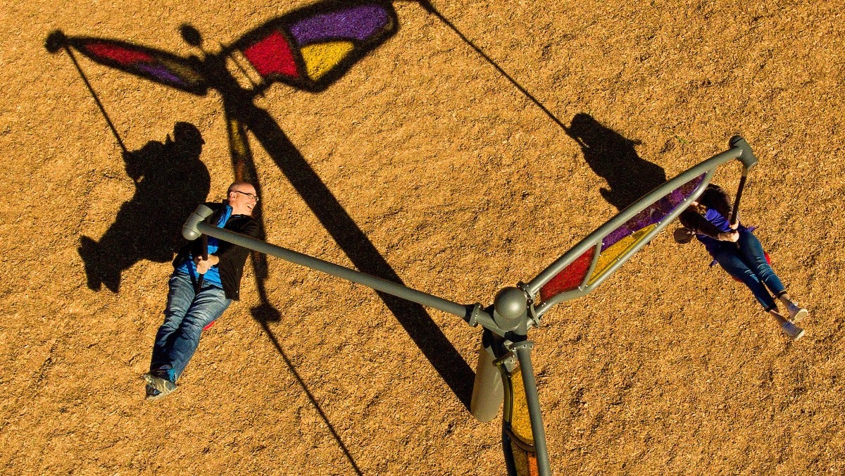 Based on the success of our patented ShadowPlay® SkyRunner, we developed a new way for children and adults to enjoy the sensation of flight on the playground. The patent-pending design of the ShadowPlay® TriRunner® features three soft touch molded seats attached to the same ComfortGrip™ ropes found on our SkyRun® ZipTrack and ZipLine. They’re suspended from ShadowPlay panels, and as users spin around, the panels disperse colorful shadows on the ground below. It’s a fun, exciting and sensory play experience unlike any other!