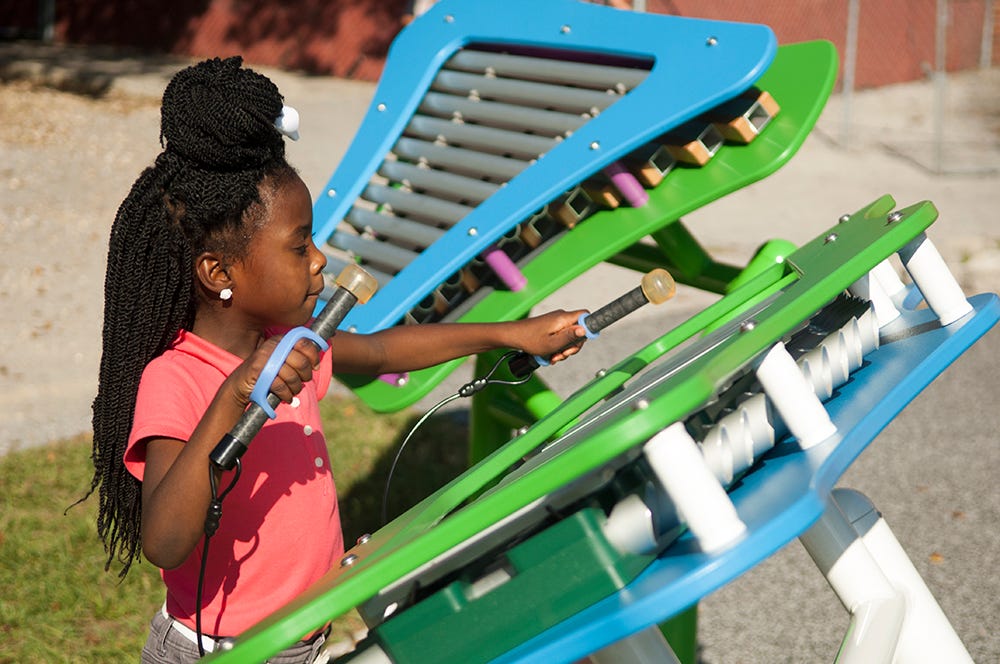 Inclusive playground equipment can take many forms, depending on your space and budget. As you can see from this list, you can choose from musical instruments, rope climbers, slides, swings, and more.
