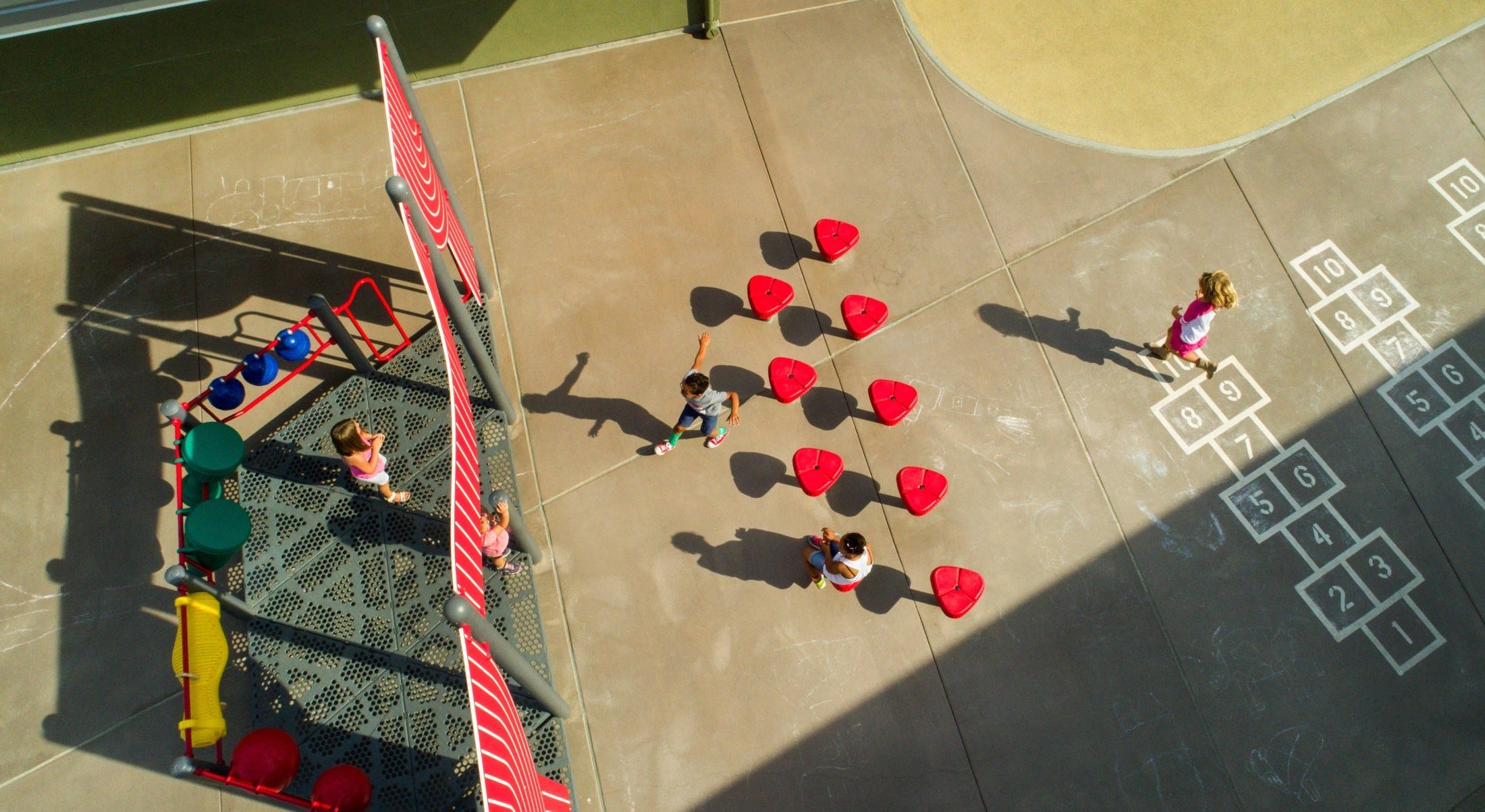 - Creating “stations” with playground equipment such as balls and hula hoops