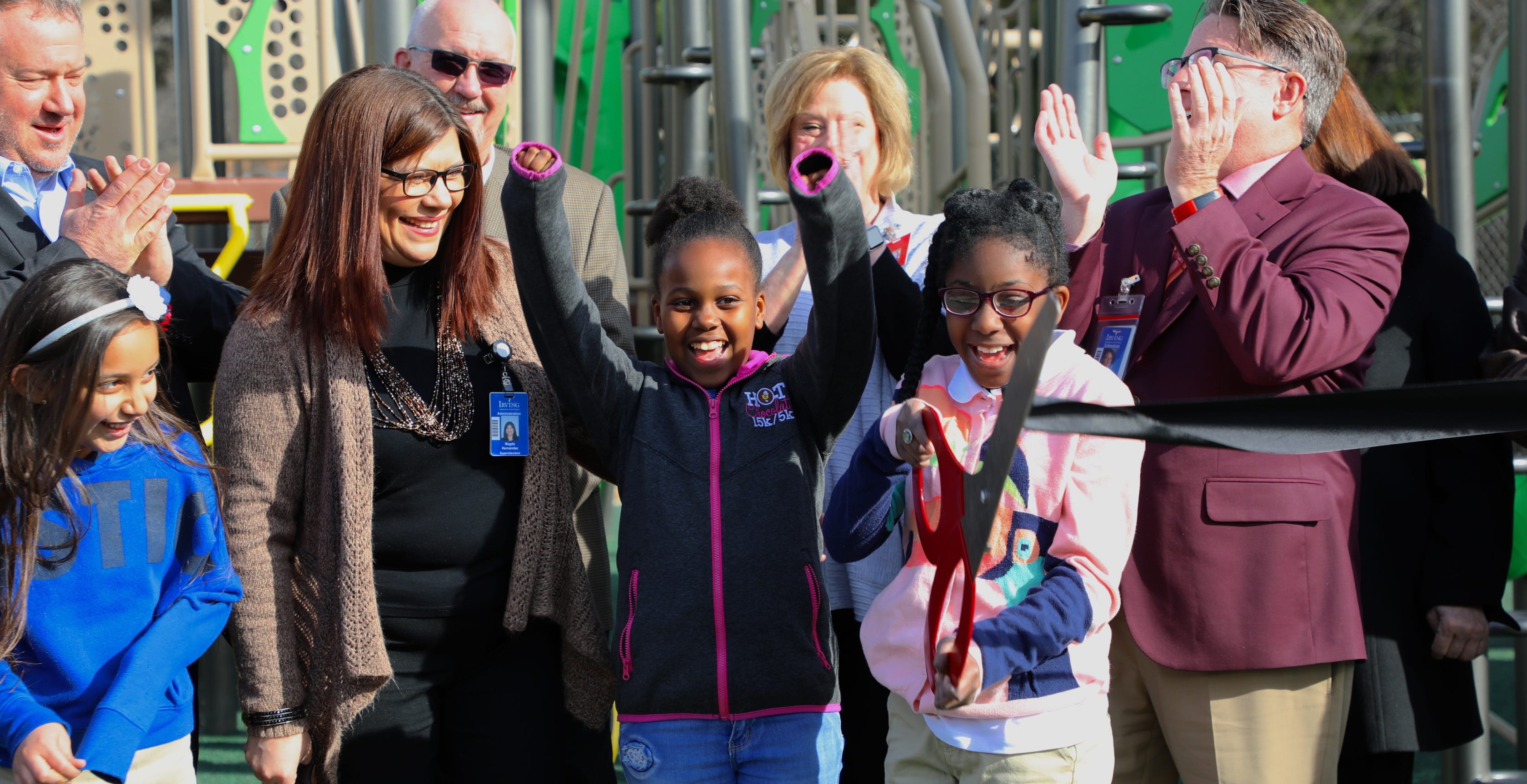 Each of the play areas was designed for specific age groups and the equipment was selected by members of the Johnston Elementary Student Council. The student designers were on hand for the ribbon-cutting on February 26, 2019 and offered some thoughts on the new playground in a video released by ICTN.