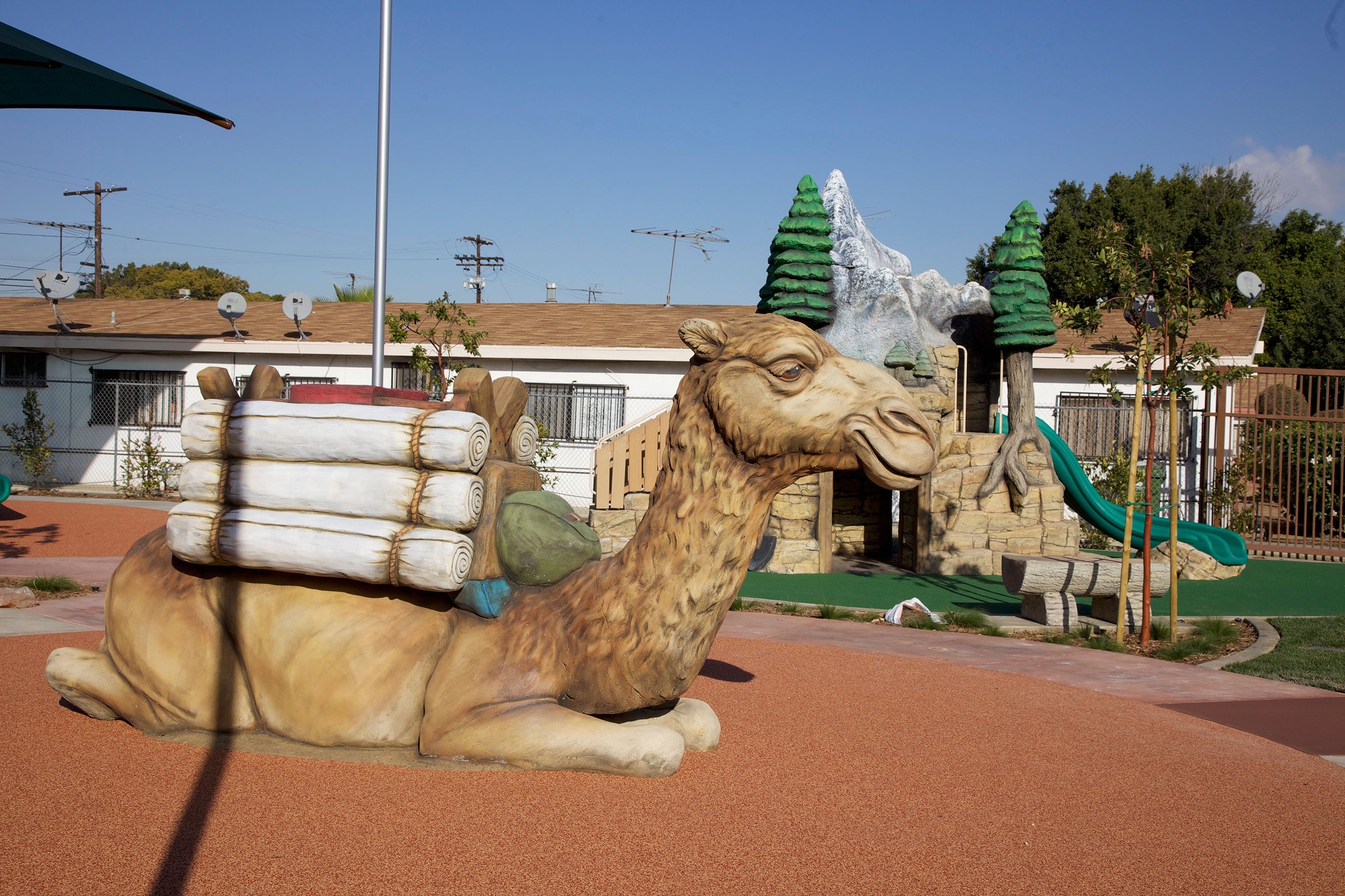 This climbable camel play structure was part of Justin's design for Drum Barracks Park in California