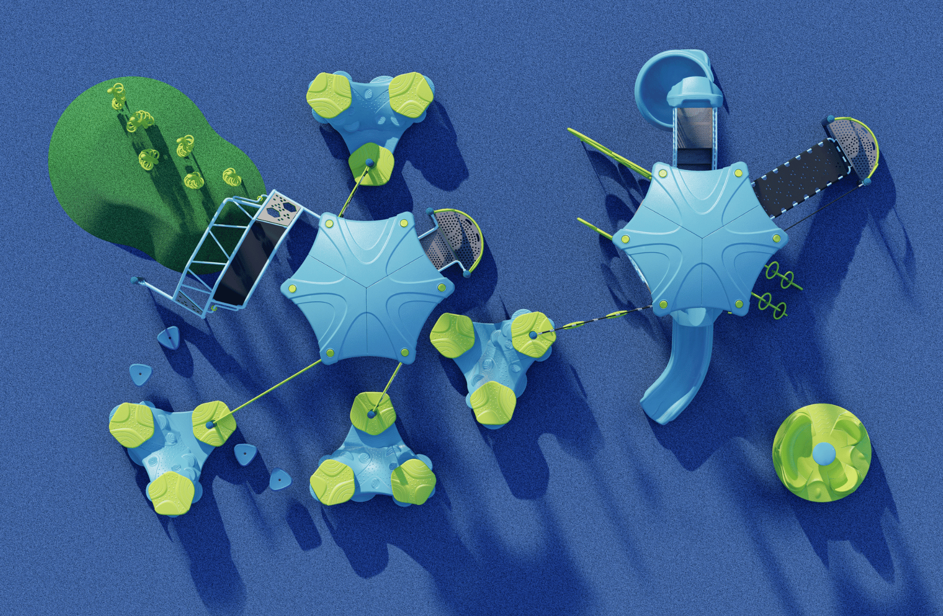 Freestanding play elements not only broaden your play space, but also enhance the overall play value of the design. Our Catalina Climbing System allows you to create a structure thatis either expansive or compact, short or tall. Its adaptability makes it suitable for any setting, be it a preschool play area or a space designed for older kids.