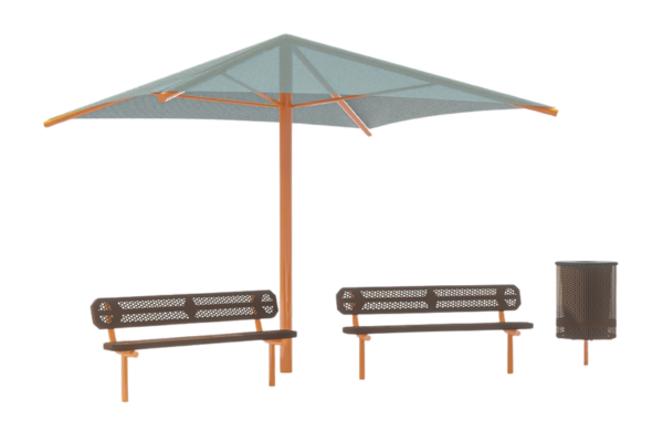 2 Benches, Shade, and Litter Bin